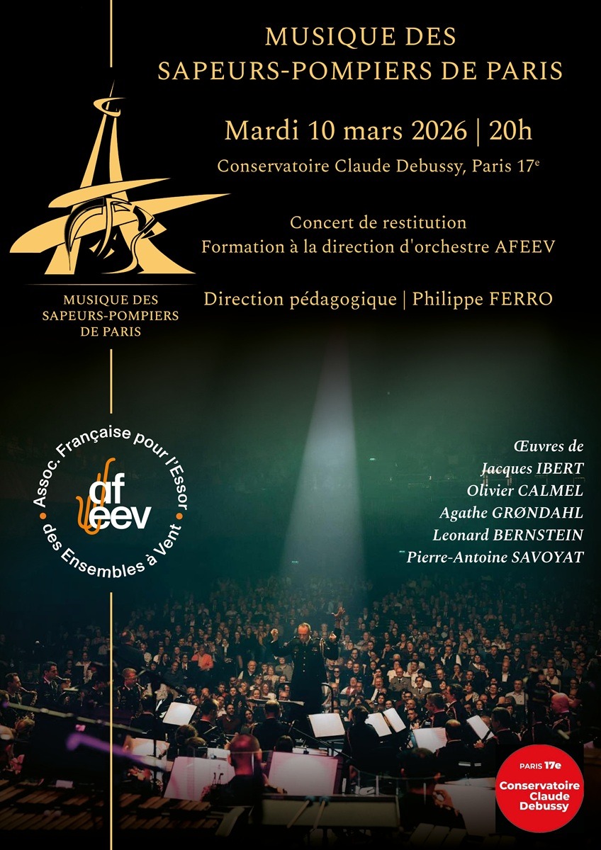 L’Association Française pour l’Essor des Ensembles à Vent (association loi 1901 à but non lucratif reconnue d’intérêt général) a tenu son Assemblée Générale ordinaire le samedi 24 janvier 2026, de 10h à 10h50, au Conservatoire à Rayonnement Régional de Paris (14 rue de Madrid –......